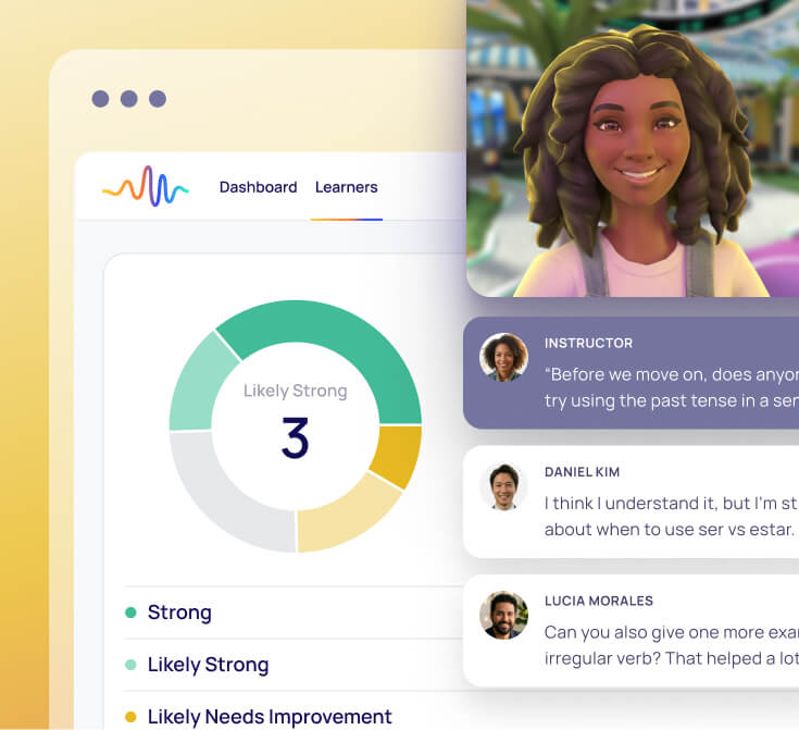 Ferramentas de IA sob demanda dão aos alunos controle para explorar temas, cenários e linguagem relevantes para suas necessidades ou interesses imediatos. Seja para se preparar para uma reunião próxima ou reforçar uma dificuldade, os alunos podem praticar de forma intencional, sem precisar esperar pela próxima sessão agendada.