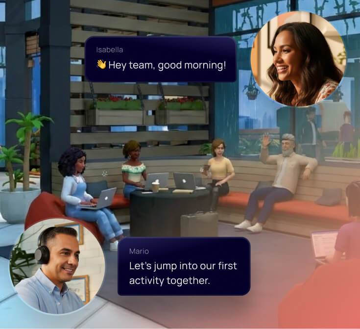 Prompts e formatos guiados reduzem atritos e mantêm a interação focada — permitindo que os participantes pratiquem conversas reais sem precisar se organizar por conta própria.