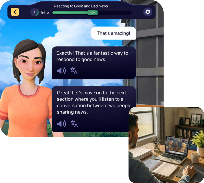 Many self-paced language tools rely on unguided activity. Learners are exposed to content or open-ended AI interaction, but without structure, progression, or instructional intent. Practice becomes fragmented, and progress is difficult to sustain.